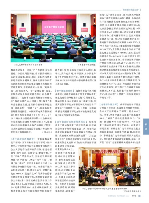 等养老机构新冠肺炎疫情防控工作,分别 【老干部政治及生活待遇落实】 成都市 助”活动优秀项目案例 10 个,7 名优秀 社