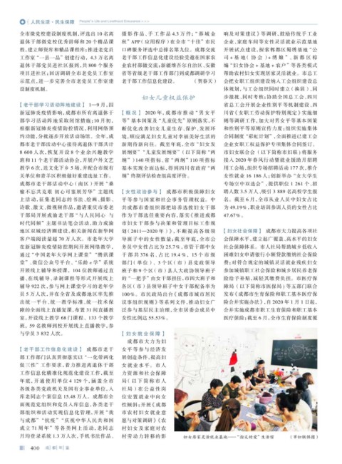新冠肺炎疫情影响,成都市所有离退休干 【概况】 2020 年,成都市推动 “男女平 川省 《女职工劳动保护特别规定》实施细