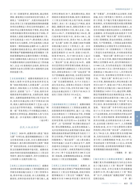 【概况】 2020 年,成都市深入推进 “根治 保险或商业担保函代替现金作为农民工工 责人 750 余人次,现场反馈突出问题 580
