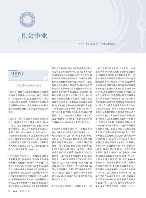 【概况】 2020 年,成都市继续深入实施创 强科技监督和科研诚信建设,制定出台 《成 网分室;北航成都创新研究院正式启用;推