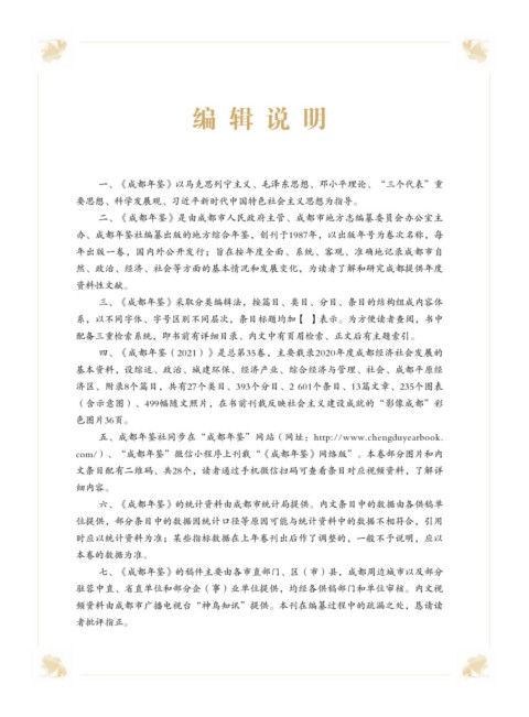 四、《成都年鉴(2021)》是总第35卷,主要载录2020年度成都经济社会发展的