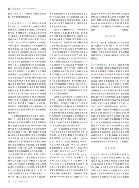 学、厦门大学、中国城市规划设计研究院、 发展为切入点,解析长征精神的科学内涵 【概况】 2020 年,成都市社会科学界联合
