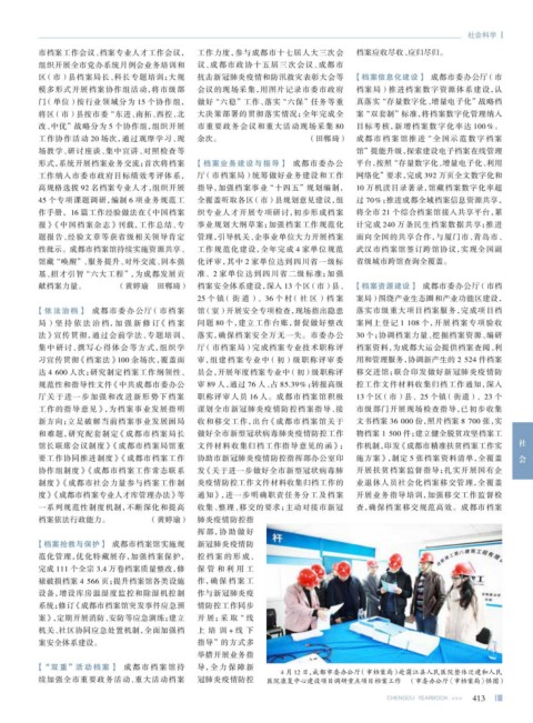 一系列规范性制度机制,不断深化和提高 收集、整理、移交的要求;主动对接市新冠 查,确保档案移交规范高效。成都市档案