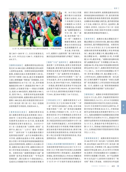 机关对 16 000 名新入职教师进行涉未成年 均衡监测、教育现代化发展水平监测和教 研先进单位 220 个,成都市教育科研先进