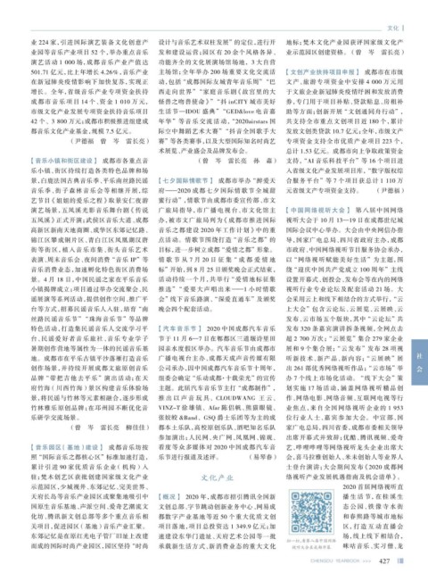【音乐园区 (基地)建设】 成都音乐坊按 看度等众多媒体对 2020 中国成都汽车音 艺、哔哩哔哩等网络视听龙头企业出席大