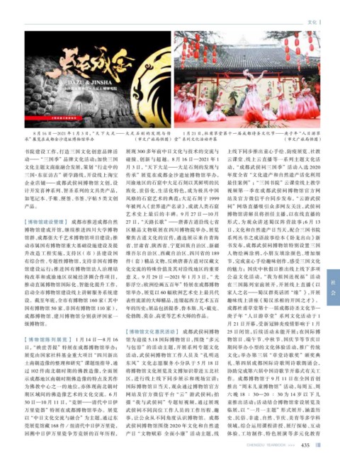8 月 16 日—2021 年 1 月 3 日,“天下大足——大足石刻的发现与传 1 月 21 日,杜甫草堂第十一届成都诗圣文化节——庚子年 “人日游草