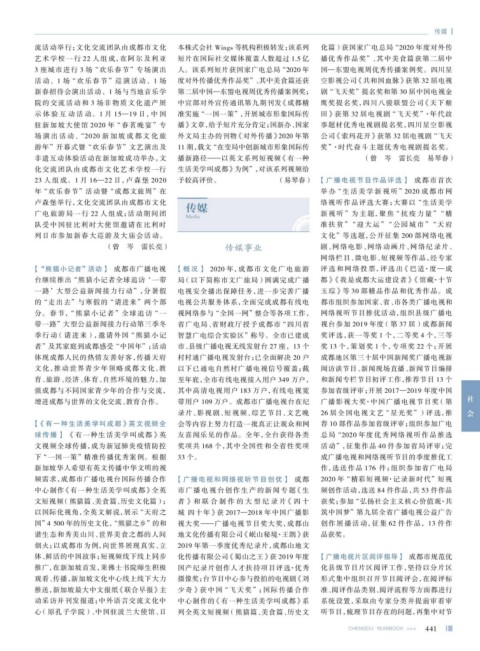 【 “熊猫小记者”活动】 成都市广播电视 【概况】 2020 年,成都市文化广电旅游 评选和网络投票,评选出 《巴适·度—成