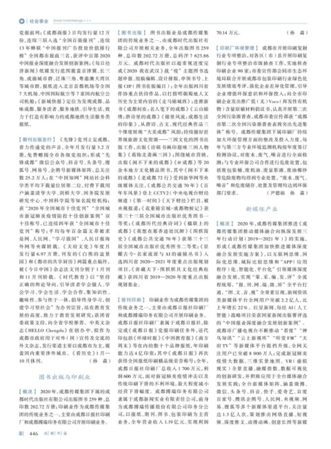 【概况】 2020 年,成都传媒集团下属的成 经营下滑幅度。成都博瑞印务有限公司 微信、头条号、抖音、快手、爱奇艺、百度