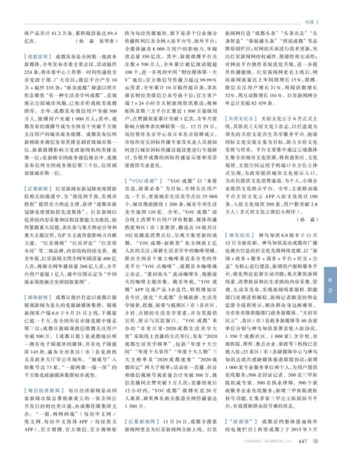 已超一千万,在全国所有市级党媒中排名 宣传、展示与沉淀窗口。 “YOU 成都”承 民云”、各区 (市)县政务新媒体等 40 余家
