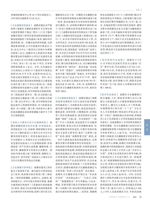 定》要求,取消部分医疗机构 (除三级医 成都 市卫生健康 系统开展 打击 “非 法医 头人 51 名,后备人选 40 名。全年,全市设