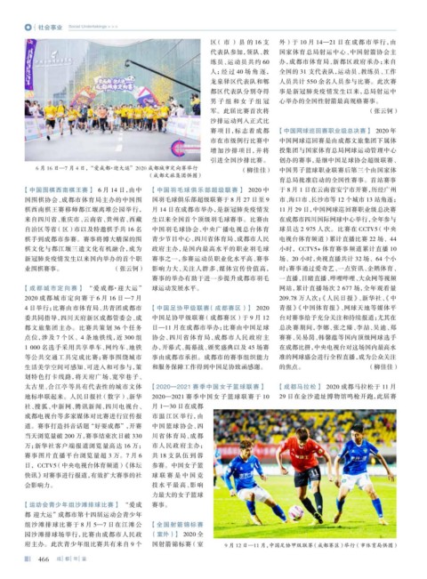太古里、合江亭等具有代表性的城市文体 【2020—2021 赛季中国女子篮球联赛】 【成都马拉松】 2020 成都马拉松于 11 月