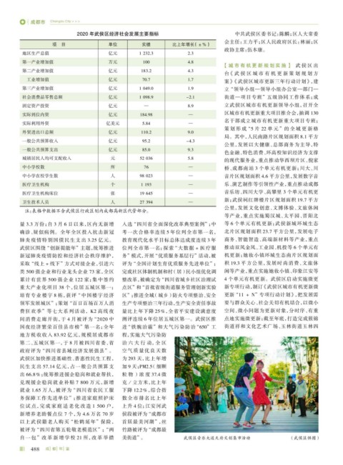 2020 年武侯区经济社会发展主要指标 中共武侯区委书记:陈麟;区人大常委