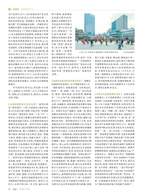 域教育高质量发展。成华区坚持全域统 成都东站片区 TOD 控规调整工作;打造功 绕主导产业新签约重大项目 15 个 , 推进规