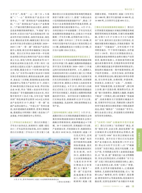 青白江区推进二手车出口工作方案》 《成 促;同日 10 时 30 分,中欧班列 (成渝)开 公园城市多元化投资建设运营模式,推 成都平原经济区