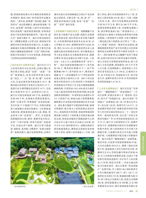 万亩花卉苗木为生态本底,北林区域已实 药 184 个、Ⅲ类医疗器械 33 个),在产药 人才公寓,引进两院院士、国家和省人才计