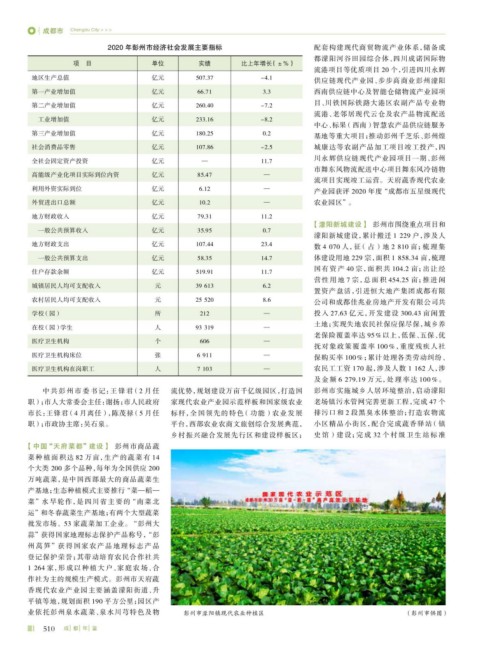 2020 年彭州市经济社会发展主要指标 配套构建现代商贸物流产业体系,储备成