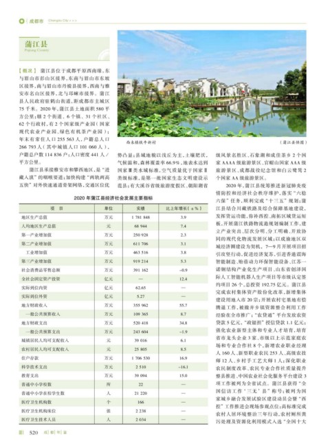 2020 年蒲江县经济社会发展主要指标