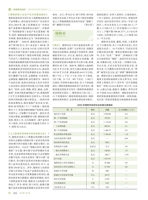 业孵化器”。2020 年,德阳高新区实现工 绵阳市有羌族、藏族、回族、土家族等