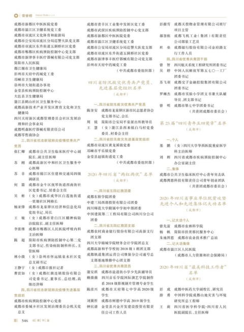 四、四川省抗击新冠肺炎疫情先进基层 陈彦兴 成都市天府第七中学高 2020 级 彭 成 成都中医药大学副校长、研究员
