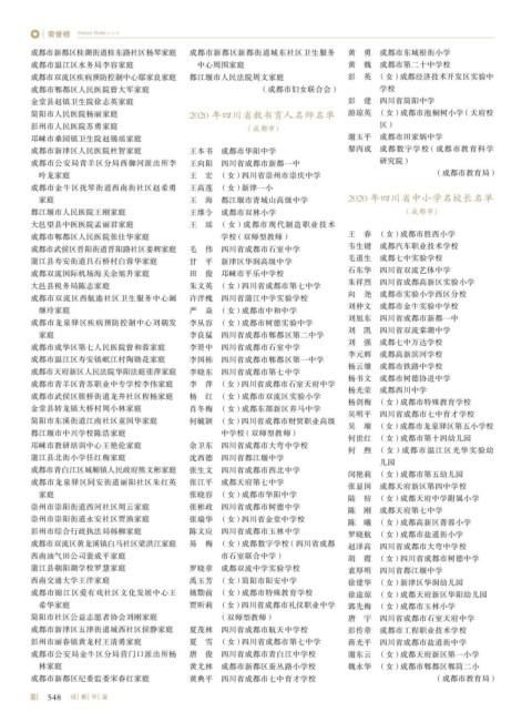 简阳市人民医院杨丽家庭 2020 年四川省教书育人名师名单 游琼英 (女)成都市泡桐树小学 (天府校