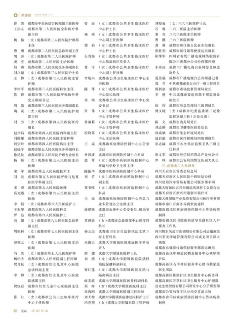 赵华昌 成都市第四人民医院内科副主任 段晓菲 (女)成都市公共卫生临床医疗 孙成斌 成都市生态环境局处长