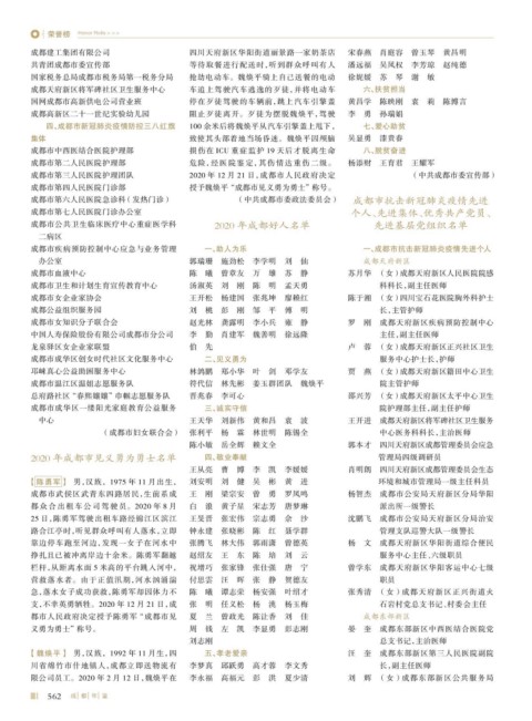成 都市公共卫生临床医疗中心重症医学科 2020 年成都好人名单 先进基层党组织名单