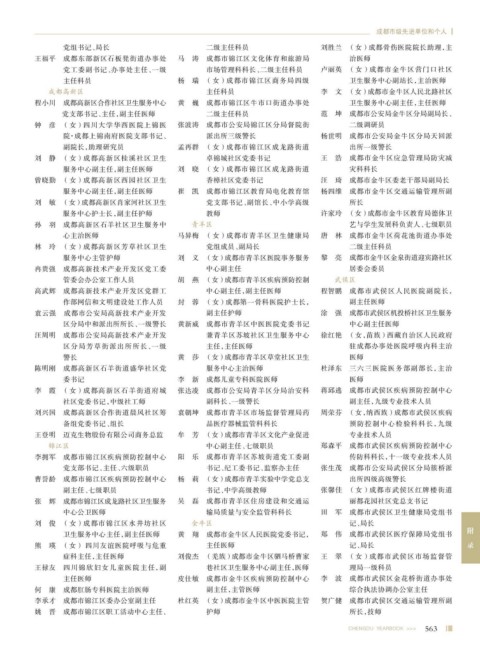 卫生服务中心主任,副主任医师 黄 翔 成都市金牛区人民医院党委书记, 郑 伟 成都市武侯区医疗保障局党组书