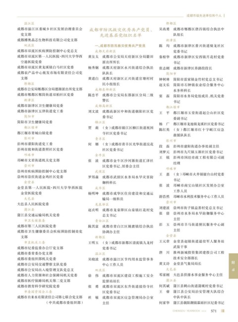 成都市自来水有限责任公司第七联合党支部 杜 敏 成都市双流区应急管理局办公室 中队中队长