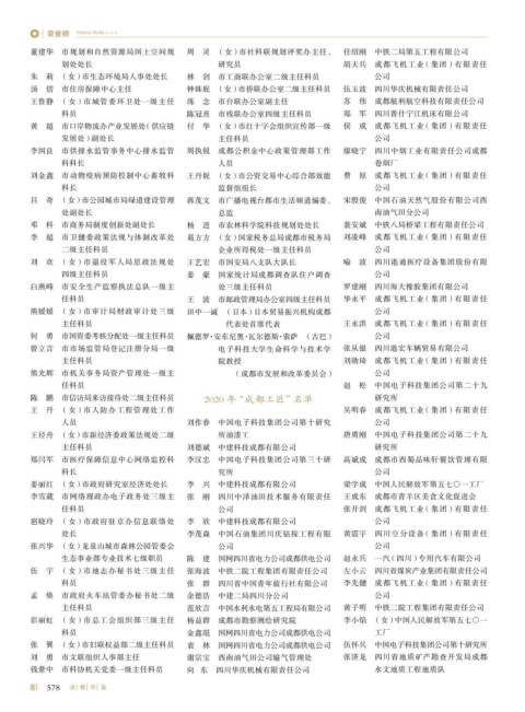 陈 鹏 市信访局来访接待处二级主任科员 2020 年 “成都工匠”名单 研究所