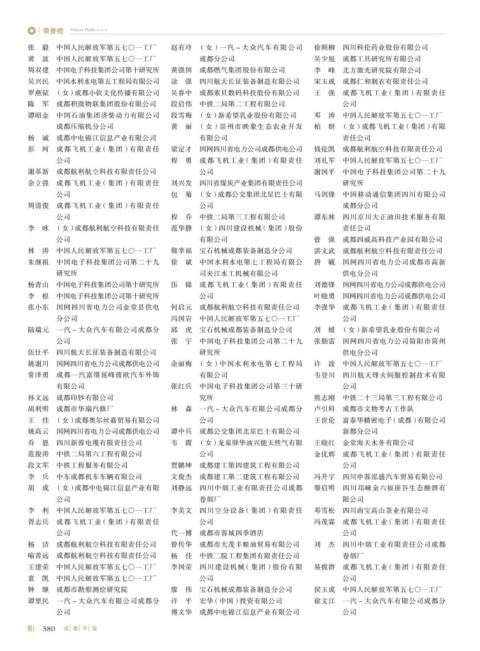 王建荣 中国人民解放军第五七〇一工厂 李国荣 四川建设机械 (集团)股份有限 易拔群 成都飞机工业 (集团)有限责任