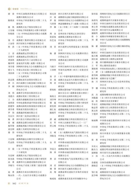 付 俊 (女)中国电子科技集团公司第 李高之 成都航利航空科技有限责任公司 陈自力 成都宏明双新科技股份有限公司