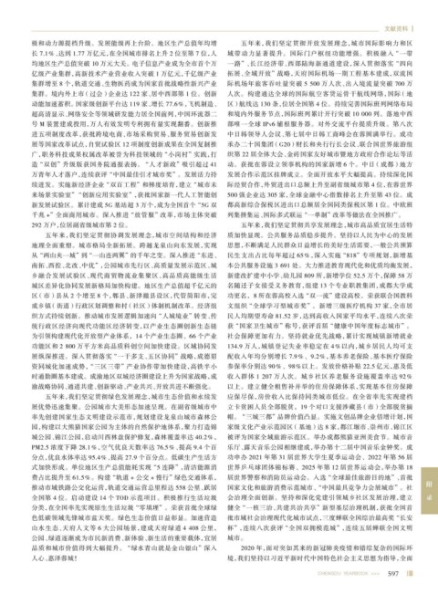 山水生态、天府人文等 6 大公园场景,建成天府绿道 4 408 公里, 杯”,连续八次获评 “全国双拥模范城”,连续五届蝉联全国文明