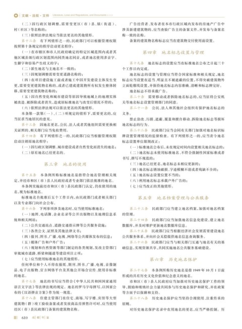 语言文字法》等法律法规的规定。地名的罗马字母拼写,以国家公 导,鼓励和吸纳社会力量共同参与历史地名保护和研究,并在政策