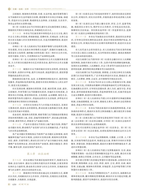 第十六条 城镇社区应当保持城市宜居生活特质,持续优化 盾纠纷化解、教育帮扶和法律服务等方面的作用。