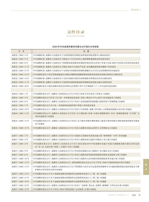 2020 年中共成都市委及市委办公厅部分文件目录