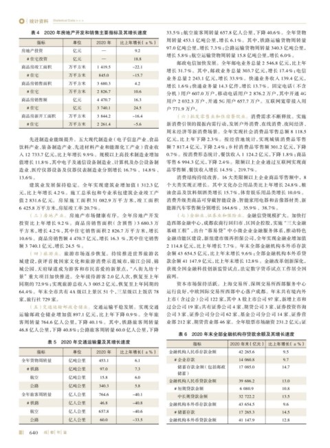 表 4 2020 年房地产开发和销售主要指标及其增长速度 33.5%;航空旅客周转量 657.8 亿人公里,下降 40.6%。全年货物