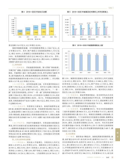 图 4 2016—2020 年进出口总额 图 5 2016—2020 年城镇及农村居民人均可支配收入