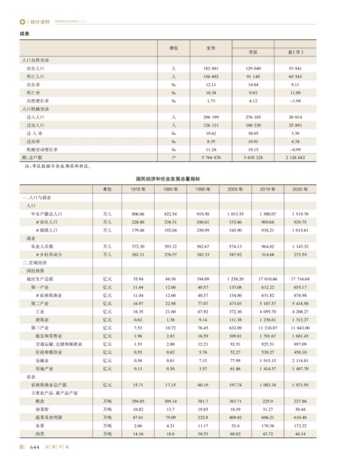 单位 1978 年 1980 年 1990 年 2000 年 2019 年 2020 年