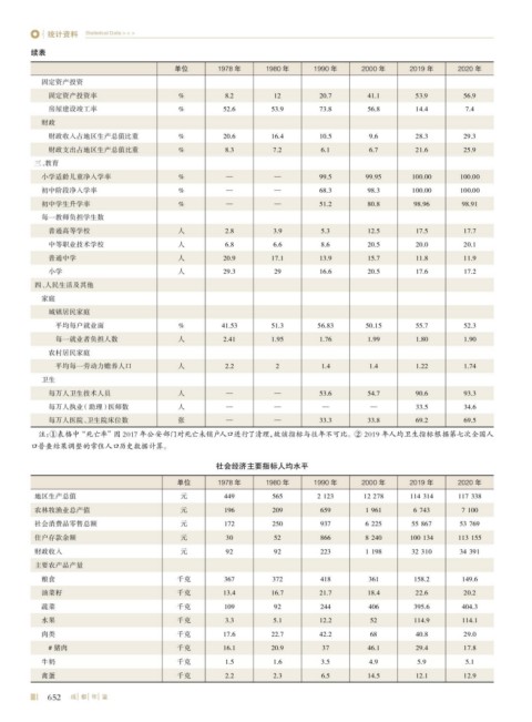 单位 1978 年 1980 年 1990 年 2000 年 2019 年 2020 年