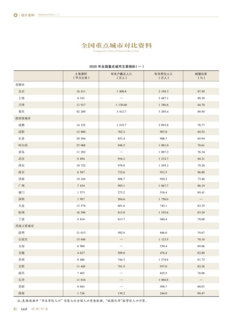 Comparative Data of National Key Cities
