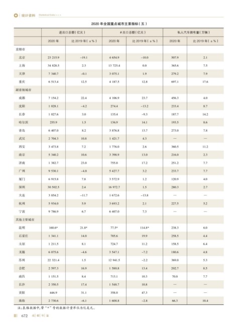 2020 年全国重点城市主要指标 (五)