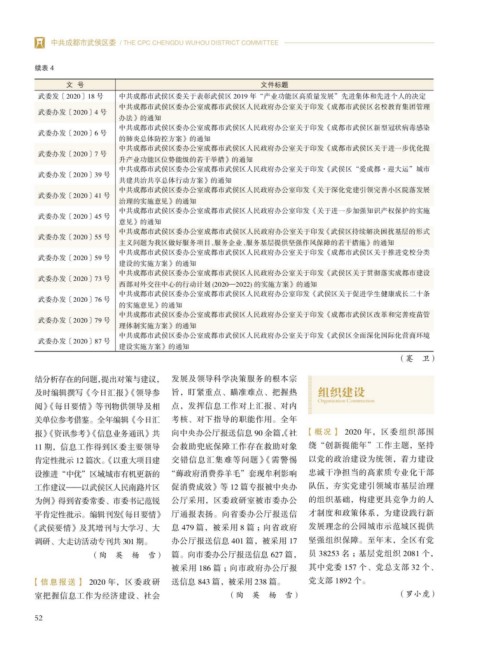 报》《资讯参考》《信息业务通讯》共 向中央办公厅报送信息 90 余篇,《社 【概况】 2020 年,区委组织部围