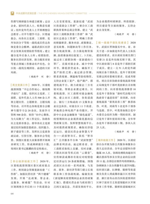 势,围绕区委重大决策部署开展调 汇”公共服务平台和“武侯智慧” 【海外统战工作】 2020 年,区政府
