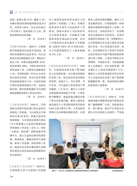 【民事行政检察】 2020 年,区检察 助,求助率 100%;对 19 所幼儿园、 进行审查,对王某某进行讯问。同