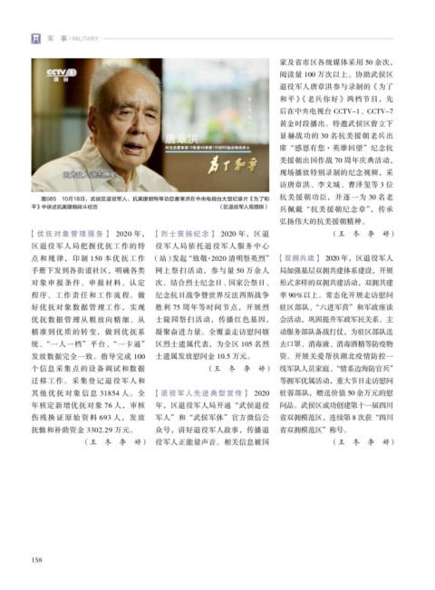 图085 10月18日,武侯区退役军人、抗美援朝特等功臣唐章洪在中央电视台大型纪录片《为了和 抗美援朝功臣,并逐一为 30 名老
