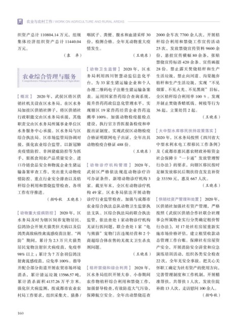【概况】 2020 年,武侯区将区供 表。运用国家兽药综合查询系统, 全区秸秆综合利用率 100 ﹪。发现