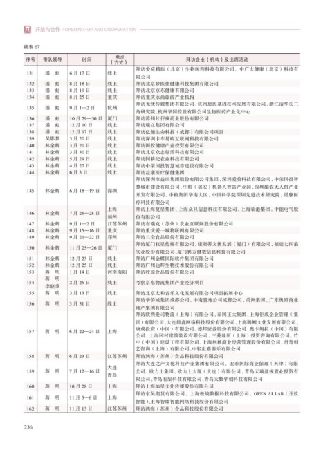 序号 带队领导 时间 拜访企业(机构)及出席活动