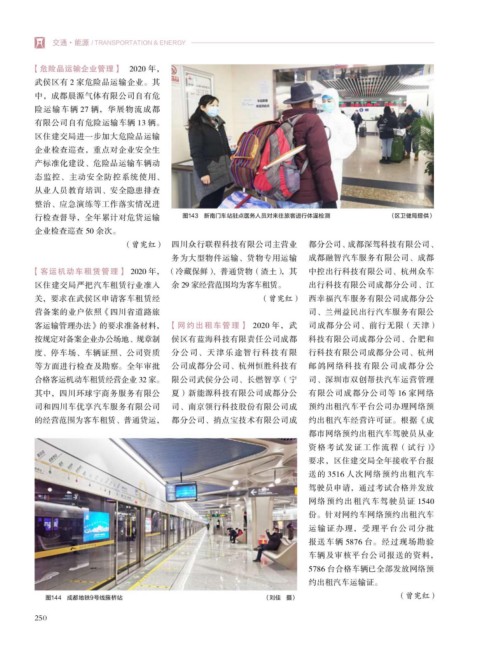 行检查督导,全年累计对危货运输 图143 新南门车站驻点医务人员对来往旅客进行体温检测 (区卫健局提供)