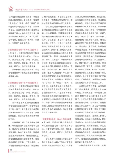 4 月 10 日,区委书记陈历章主持召 启动锦江区公园城市示范区总体规 重大决策部署和锦江区长远发展的大