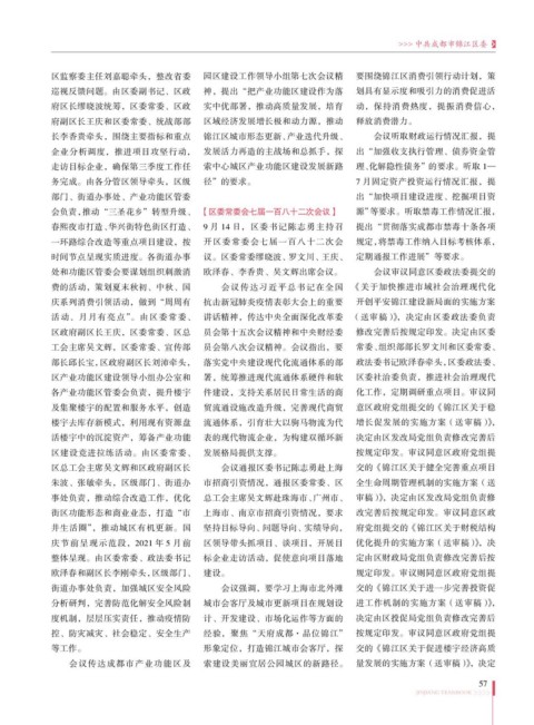 及集聚楼宇的配置和服务水平,创造 贸流通设施改造升级,完善现代商贸 意区政府党组提交的《锦江区关于稳